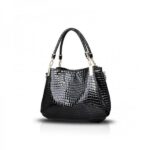 NEW CROCODILES PATTERN WOMEN HANDBAGS FASHION SHOULDER MESSENGER BAG TWO PIECES SETHANDBAG + WALLET – BLACK